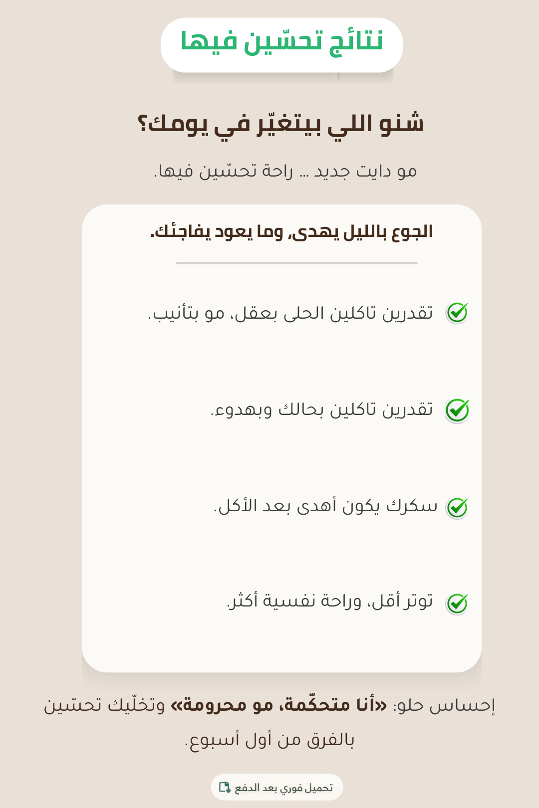 ما فيه دايت قاسي ولا حساب سعرات. الخطة تعلّمك: