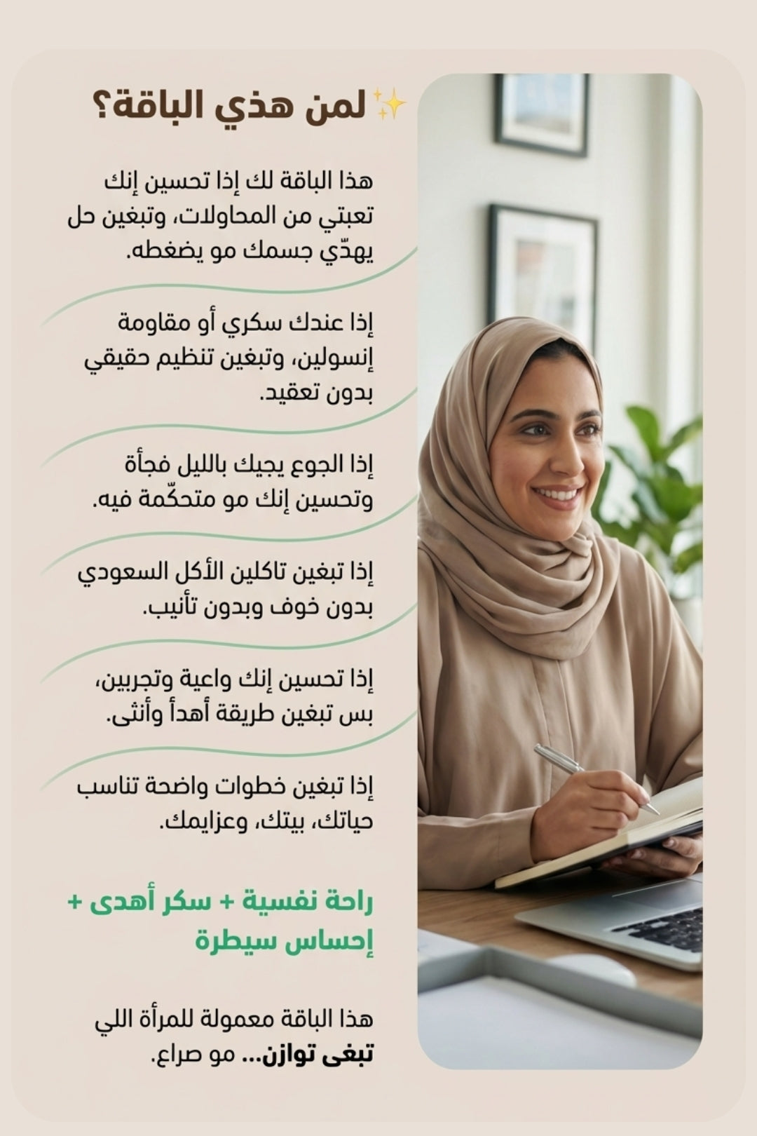 منتج تعليمي · بدون تغيير أدوية · مناسب للنساء